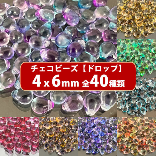 4パック分おまとめセット チェコ ビーズ デザイン ティアードロップ ドロップ しずく 約5x7mm (約43個 x4パック) ピアス イヤリング ブレスレット パーツ ハンドメイド 材料 素材
